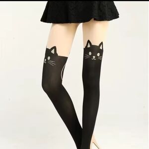 Charming black cat pattern stockings perfect for cat lovers. Add a playful touch to your outfit with these stylish stockings.