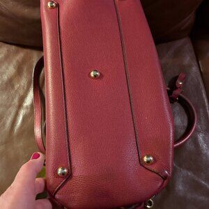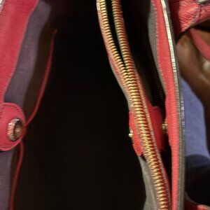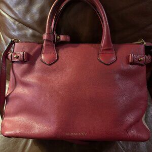 BURBERRY SM BANNER CRIMSON LEATHER CHECK CANVAS SHOULDER Medium TOTE BAG