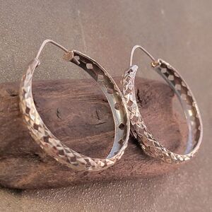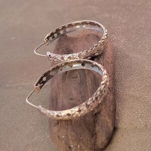 Vintage 1970's sterling silver open diamond cut hoop earrings. I believe these were made in Mexico. The earrings have been tested and confirmed as sterling silver 925.