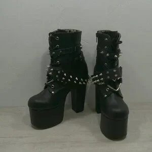 Demonia Torment-700 Black Platform Studded Goth Punk Grunge Ankle Boots Size 7.