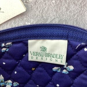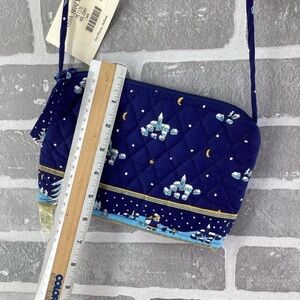 Charming quilted design. Night sky theme with stars, a Christmas village, snow, and trees. Perfect accessory to add to holiday outfits. Vintage print from 1997 in mint NWT condition.