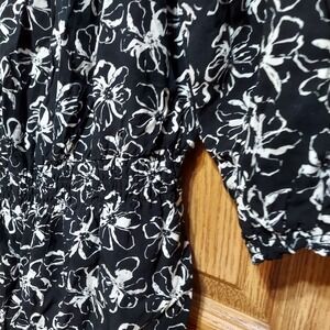 Banana Republic Off the Shoulder Black Floral Romper Large