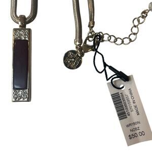 White House Black Market Silver, Burgundy & Rhinestone Bar Pendant Necklace NWT