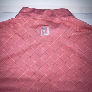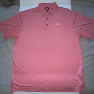 Foot Joy FJ Mens Polo Shirt XL Salmon White Diagonal Plaid Print Black Hawk Logo