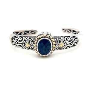 18k Gold and sterling Silver Blue Lapis Lazuli Open Cuff.