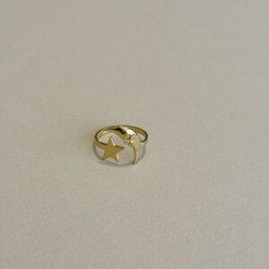 Elegant gold ring featuring a star and moon design. Perfect for adding a celestial touch to any outfit.