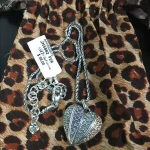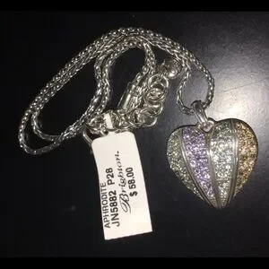 Beautiful NWT Brighton reversible heart pendant. It dangles from a 16 inch silver chain. One side of the heart is encrusted with silver, lavender, light blue, and gold shimmering rhinestones that catch the light for a subtle glow๐ก It comes with the original Brighton signature bag. A perfect addition to any Brighton lovers collection or excellent as a gift to someone special ๐๐ง๐ปโโ๏ธ๐ฆ๐น๐ฟ