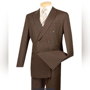 VINCI MEN'S EXECUTIVE DOUBLE BREASTED 2 PIECE BANKER PINSTRIPE SUIT. DSS-4