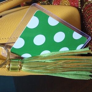 Authentic Kate Spade Jack of Hearts Playing Card with an unbranded charm/keychain.