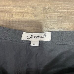 This Jessica pencil skirt in a sophisticated gray hue is designed for a professional setting. Its knee-length cut and streamlined silhouette offer a polished and tailored look. Ideal for work, this skirt is a versatile addition to any business wardrobe.