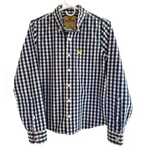 HOLLISTER~ Men’s Blue and White Long Sleeve Checkered Button-Up Shirt size S