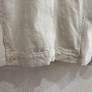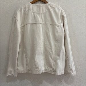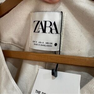 Stylish off-white jean jacket by Zara. Features button closure and front pockets. Ideal layering piece for work or play.