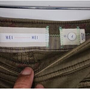 This Anthropologie Hei Hei Cargo Skirt is both stylish and practical for everyday wear. Featuring a utility style, it comes in a versatile olive green color with front pockets and button closure. Perfect for casual outings or a relaxed day around town.