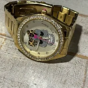 ❤️Betsey Johnson Gold Sugar Skull Watch