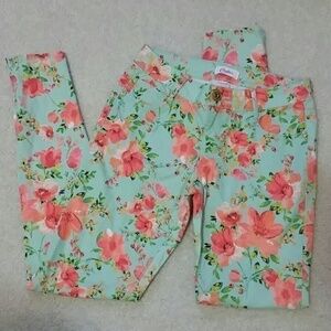 Candies 3 mint & coral floral pants w zip bottom
