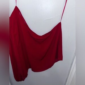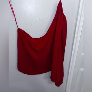NWT New York & Company Vibrant Red One-Shoulder Blouse Size: Medium