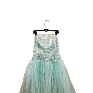Vintage Scott McClintock Womens Maxi Dress Size 16 Blue Plaid Tulle 80s Costume