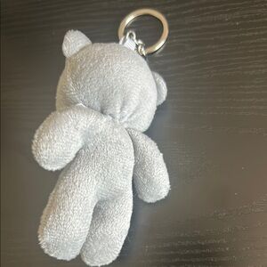 Adorable gray teddy bear keychain perfect for kids. Soft and cuddly, this keychain is a delightful accessory for backpacks or keys.