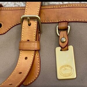 Vintage Dooney & Bourke Cabriolet tan canvas bucket bag with tan vachetta leather.