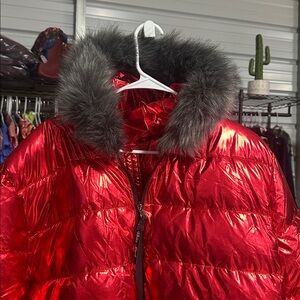 NWOT White Mark Plus Size Metallic Puffer Coat Red 3X