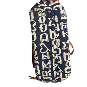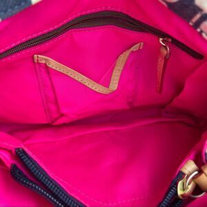 Authentic Vintage Dooney & Bourke logo Blue White Shoulder Bag Brown Leather