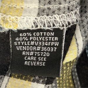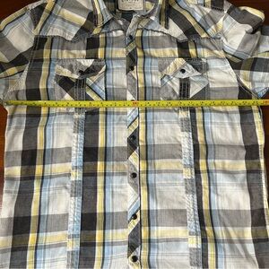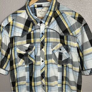 BKE Vintage White Black Yellow Plaid Athletic Fit Western Short Sleeve Button Up Woven Shirt Pearl Snaps
