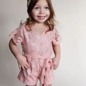 Bailey's Blossoms Lila Lace Seashell Peach Romper - 4T