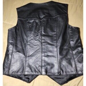 Leather Gallery Women’s Black Genuine Leather Vest 8 Snap Biker Western 90s Y2K