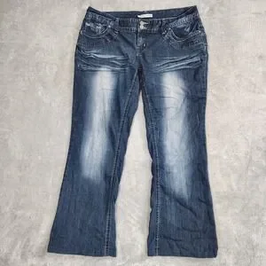 Maurices curvy womens Y2k embroidered bootcut jeans 14 stretch mid rise *HEMMED