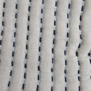 Precisely crafted parallel lines of navy pick stitches make a graphic juncture with the fabric weave. This lofty, lightweight all-cotton coverlet is meticulously woven to have pockets of warmth that deliver extra nighttime insulation. An all-season essential to layer on the bed as needed. Reverses to same look and feel as the front.