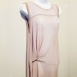 ZARA Chiffon Draped Sheer Asymmetrical Teost Side 1920s Vibe Midi Slip Dress