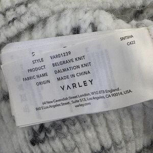 The Varley Black/White Belgrave Knit Sweater is a stylish and trendy pullover sweater designed for women. Made from a comfortable cotton blend fabric with a funnel neck and dramatic long sleeves, this sweater is perfect for adding a colorful and oversized touch to any outfit. The mock neck neckline adds a touch of sophistication, making it a versatile piece for both casual and more formal occasions. The small size ensures a flattering fit, while the Varley brand guarantees quality and style.