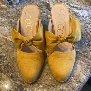 Mustard Stacked Leather Block Heel Bow Mule