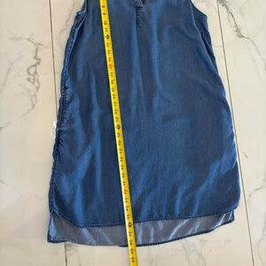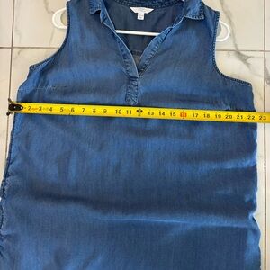 Beautiful light blue sleeveless denim dress by Time and Tru. Features a soft chambray-style fabric, a V-notch neckline with a small collar, and a relaxed, flowy fit. Preowned and in very good condition. Perfect for casual, everyday wear comfortable, versatile, and easy to style.