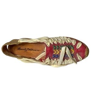A hard to find Retired Limited Edition Just the Right Show Vintage Espadrille Pasha High Heel Shoe Wedge Boho Sandal by Raine Willet by Artist Lorraine Vail