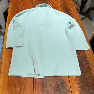 J. Crew "Sophie" sweater, women's small. Lovely mint color, great for multiple season wear. Blazer collar style combines with open-front, boxy cardigan. Mid-hip length looks great with everything! Fabric content is a 35% cotton, 30% merino, 35% polyester blend. In great shape and ready for its new home!