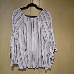 Ever Blue & White Striped Bell Sleeve Blouse, Size 2X | Flowy & Lightweight
