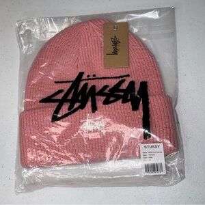 Brand new pink beanie by Stussy. Features a white embroidered logo. Brand new with tags in package. I ship out quickly on my end out of a smoke free home.