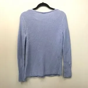 TALBOTS Petite Women's MP Cable Knit Light Blue Sweater 100% Pima Cotton