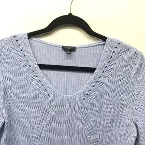 TALBOTS Petite Women's MP Cable Knit Light Blue Sweater 100% Pima Cotton. Great Condition