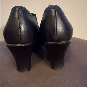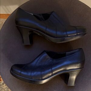 Sleek black leather heels by Dansko. Stylish and comfortable for any occasion.