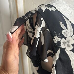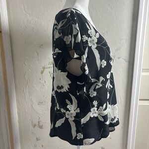 Fairy Black and White Floral Women's Top sheer sleeves