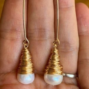 11.4mm Natural White Cultured Pearls 14K Gold Plated