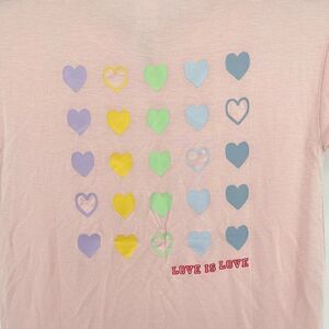 Nordstrom Girl’s Pink Red LOVE IS LOVE Hearts Crewneck Graphic Short Sleeve Tee 7/8