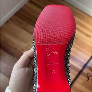 Featuring Swarovski rhinestones in an elegant flat. These are RARE Christian Louboutins.