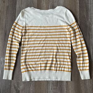 Banana Republic Sweater White/Mustard Yellow Striped w/Buttons EUC Size Medium