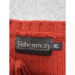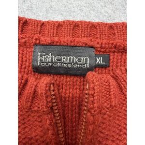 Fisherman Out of Ireland Mens XL Wool Quarter Zip Sweater Red Knit Pullover