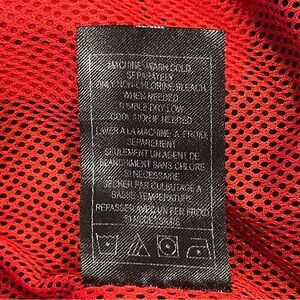 - Fabric: polyester, red mesh lining