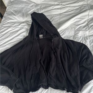 Tags: sports hoodie, black zip-up, cropped sweatshirt, comfy loungewear, athleisure, streetwear, oversized fit, trendy basics, Y2K