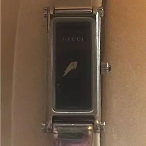 Authentic vintage Gucci 1500L watch with a black face with stainless steel bangle. Works.